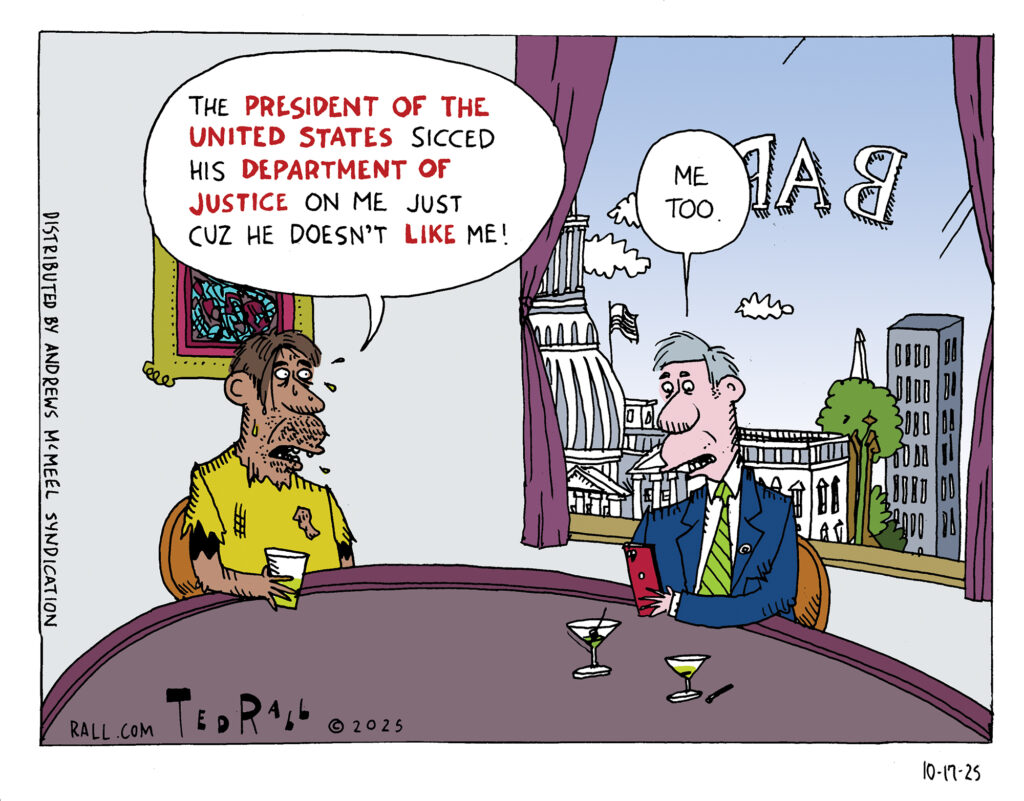 (Ted Rall, the political cartoonist, columnist and graphic novelist, co-hosts the left-vs-right DMZ America podcast with fellow cartoonist Scott Stantis and The TMI Show with political analyst Manila Chan. Subscribe: tedrall.Substack.com.)